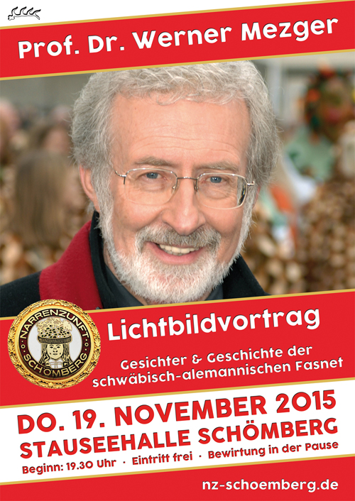 Die Narrenzunft Schömberg e. V. lädt am Donnerstag, den 19. November 2015 zu einem Lichtbildvortrag mit dem bekannten Volks- und Fasnetskundler Prof. Dr. Werner Mezger aus Rottweil in die Stauseehalle in Schömberg ein.